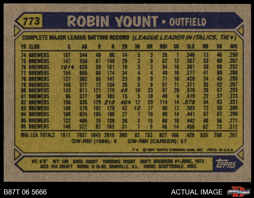1987 Topps #773 Robin Yount 8 - NM/MT