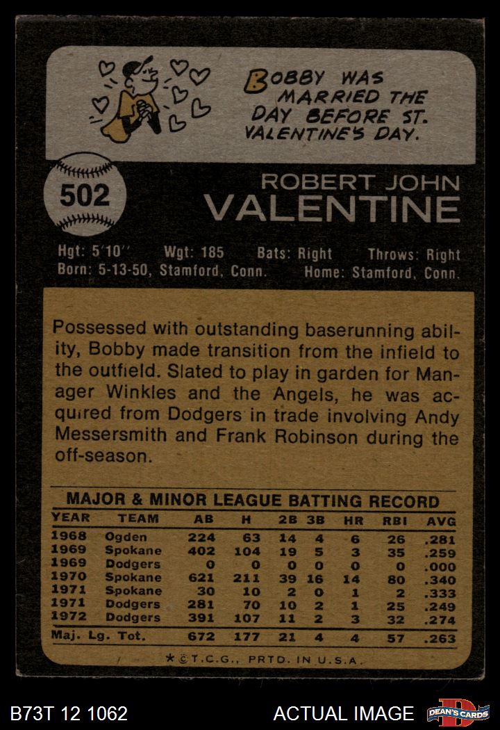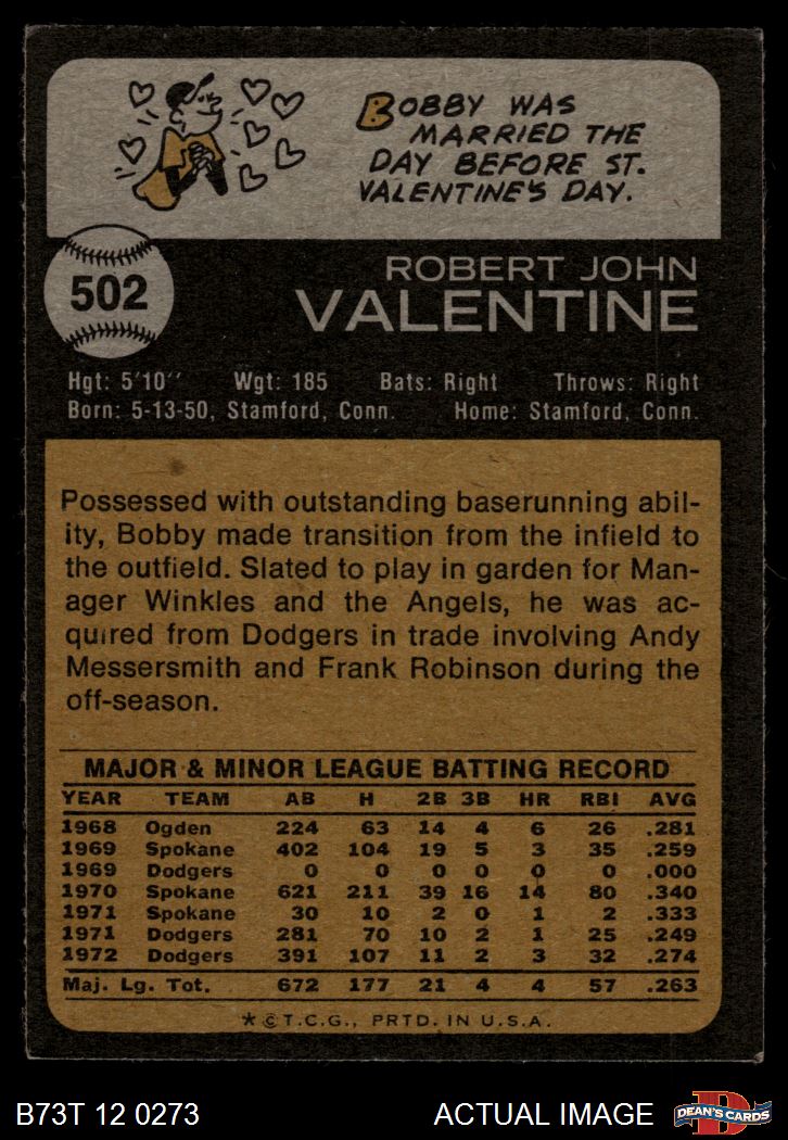 1973 Topps #502 Bobby Valentine 3 - VG