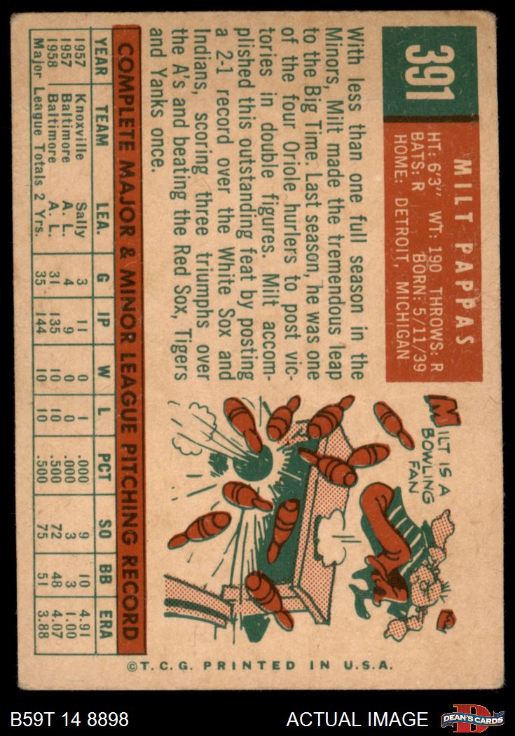 1959 Topps #391 Milt Pappas