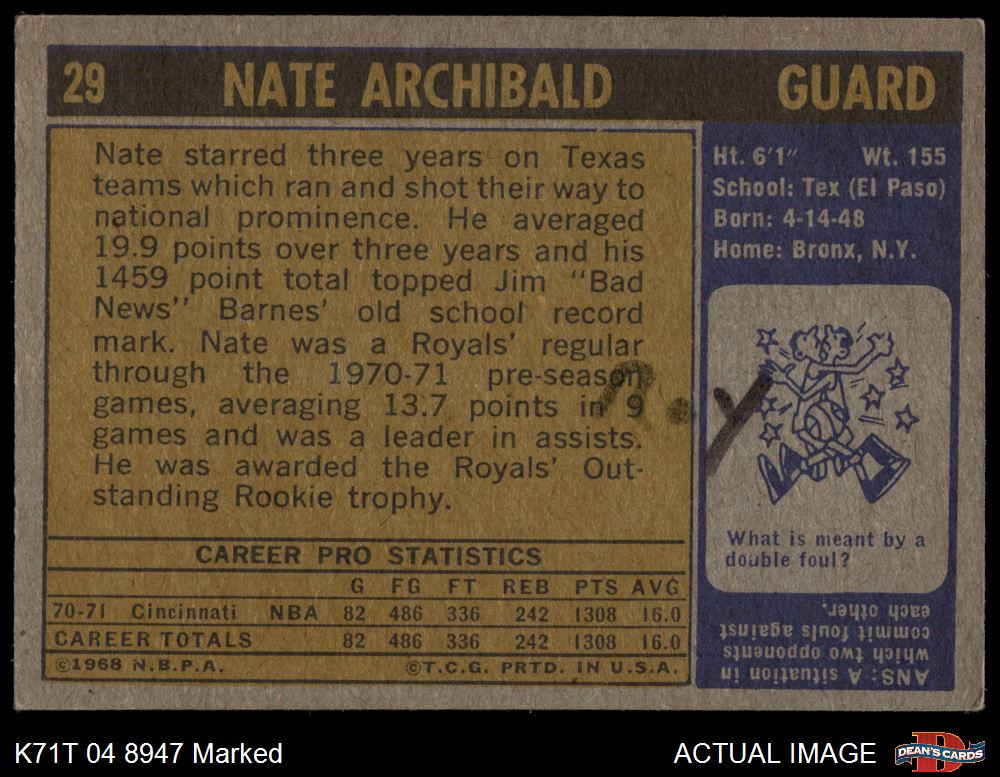 1971 Topps #29 Nate Archibald 1.5 - FAIR