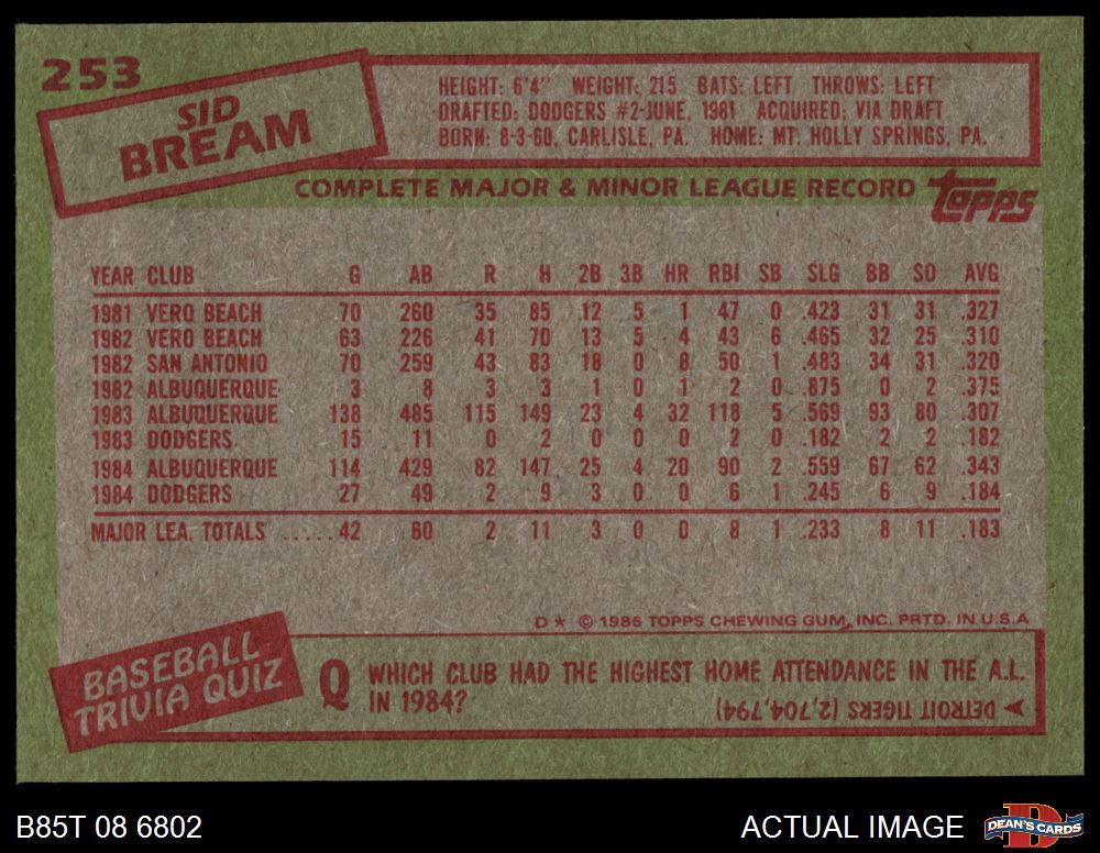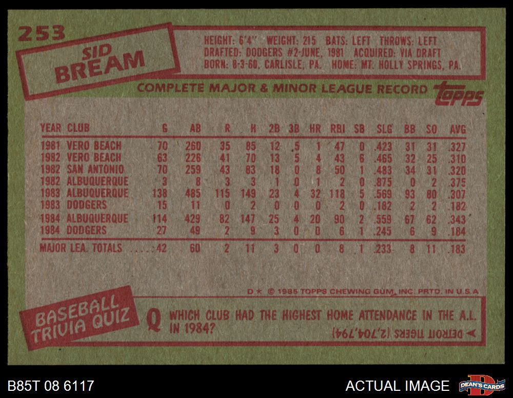 1985 Topps #253 Sid Bream 8 - NM/MT