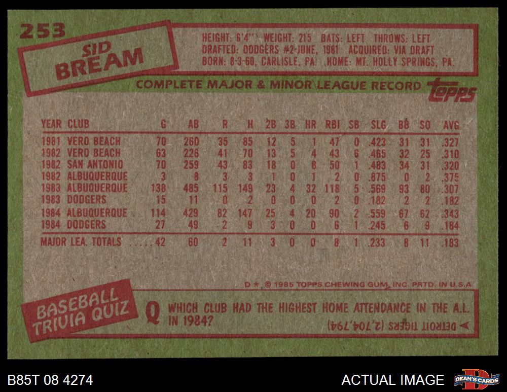 1985 Topps #253 Sid Bream 8.5 - NM/MT+