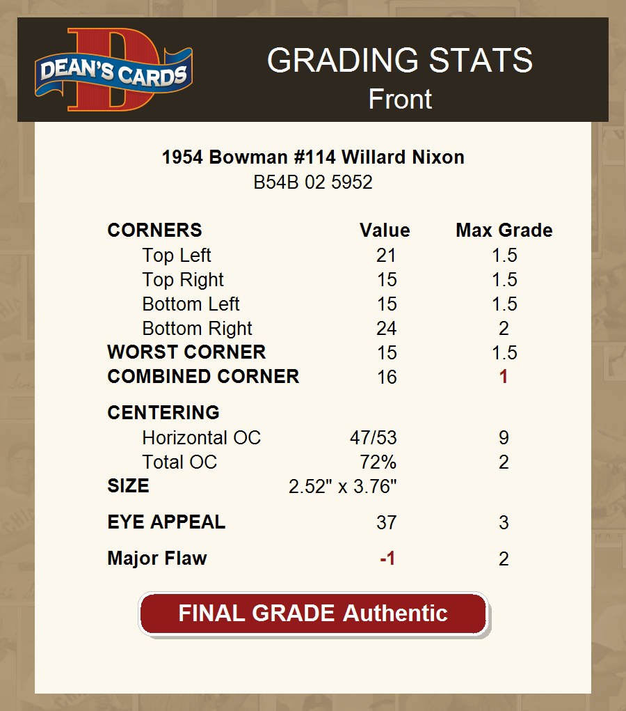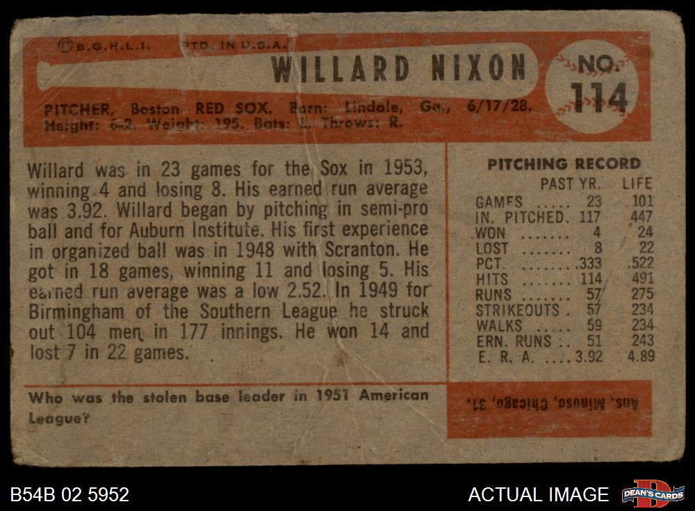 1954 Bowman #114 Willard Nixon AUTHENTIC
