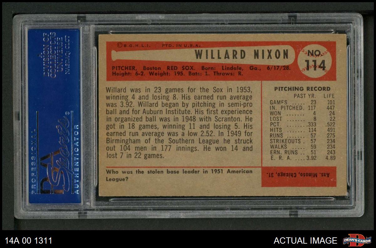 1954 Bowman #114 Willard Nixon PSA 6 - EX/MT