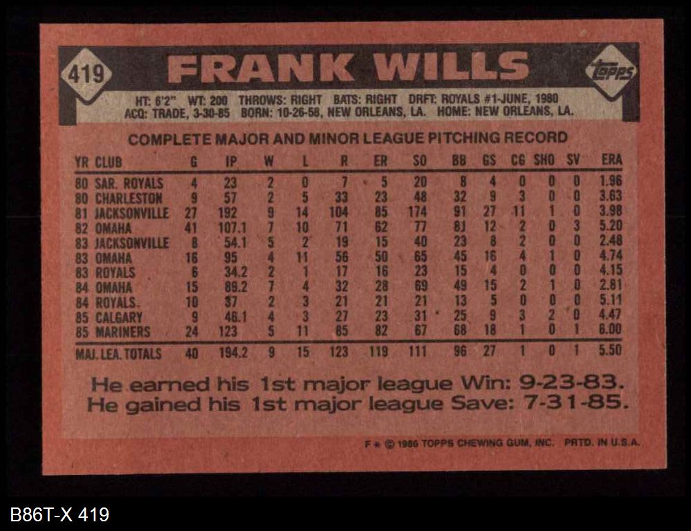 1986 Topps #419 Frank Wills