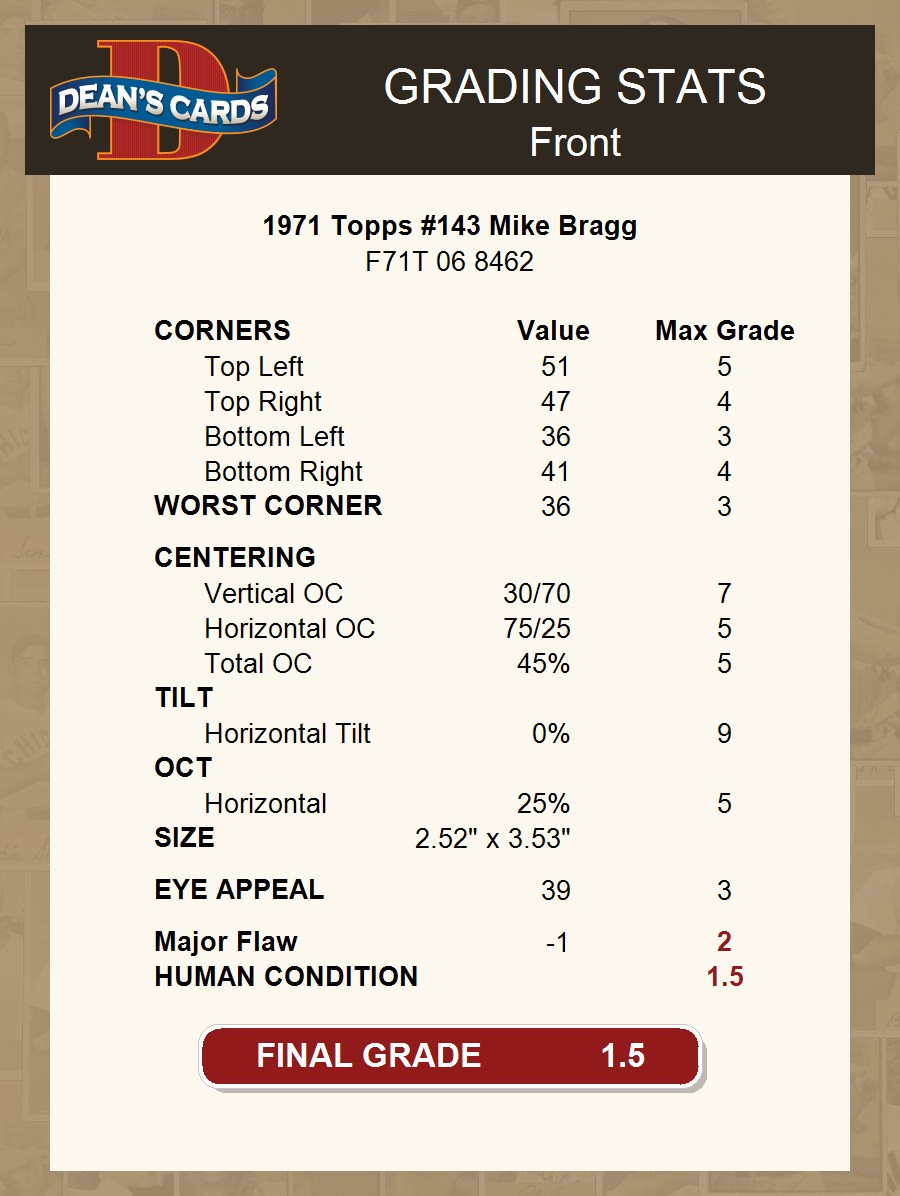 1971 Topps #143 Mike Bragg 1.5 - FAIR