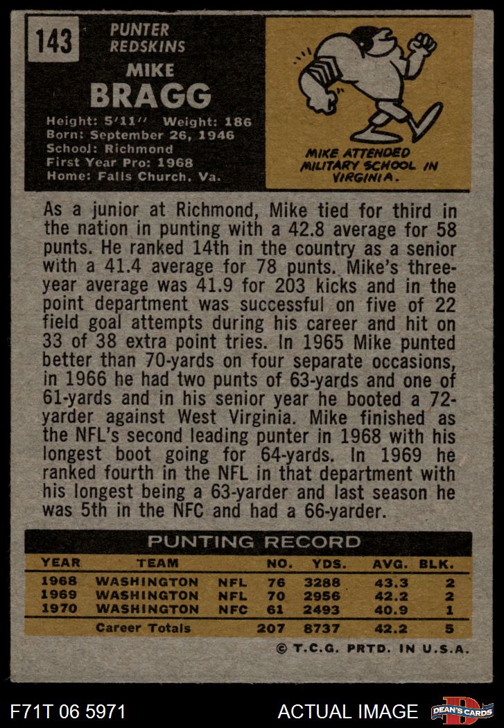 1971 Topps #143 Mike Bragg 5 - EX