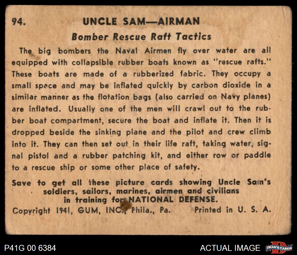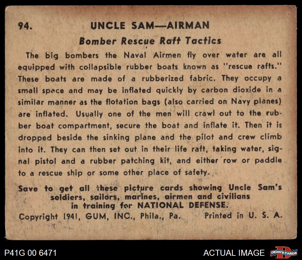 1941 Uncle Sam #94 Bomber Rescue Raft Tactics