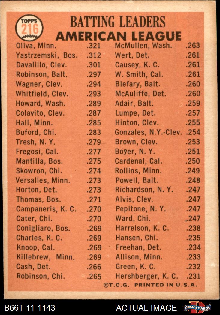1966 Topps Baseball Cards (15,949 available)1966 Topps Indians / Twins / Red Sox (14 available)