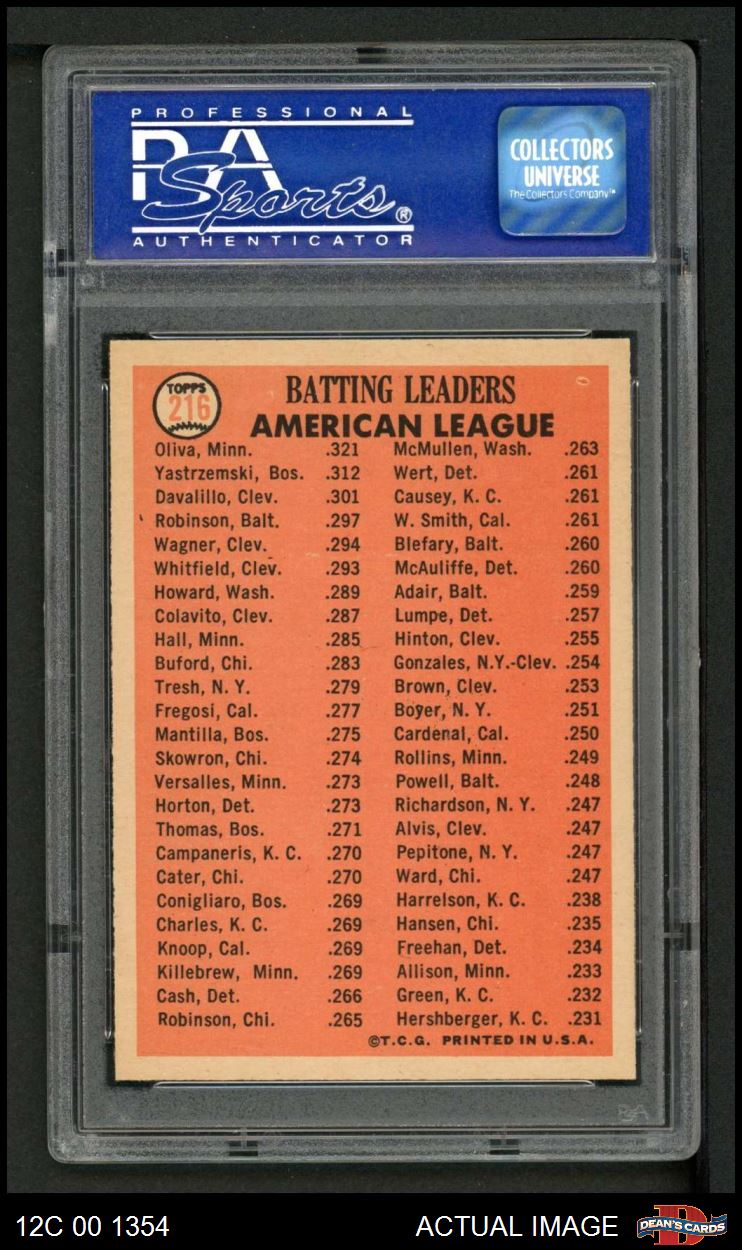 1966 Topps #216 - Tony Oliva / Carl Yastrzemski / Vic Davalillo / AL Batting Leaders PSA 7 - NM