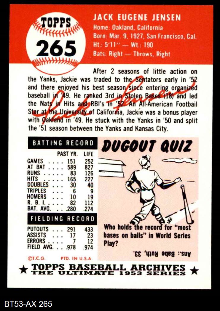 1953 Topps Archives #265 Jackie Jensen