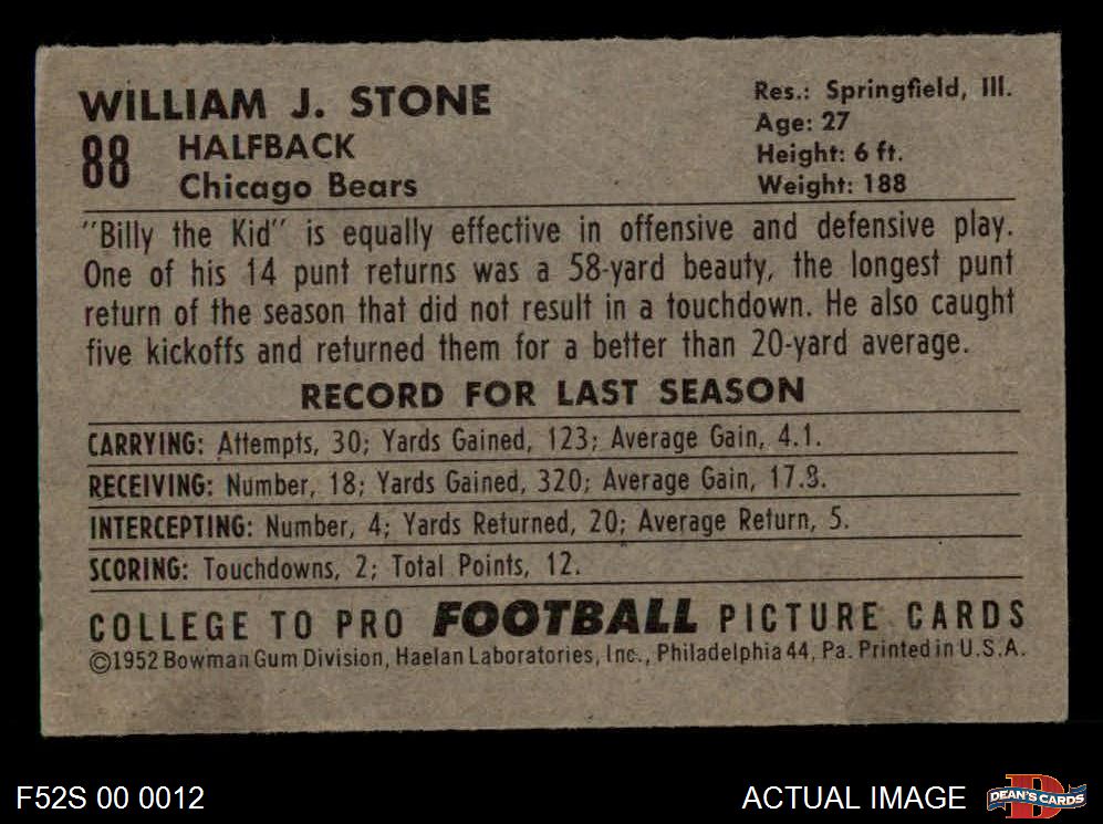 1952 Bowman Small #88 Billy Stone 5 - EX
