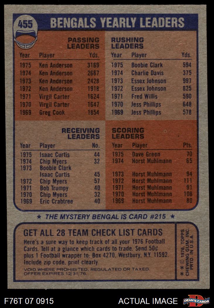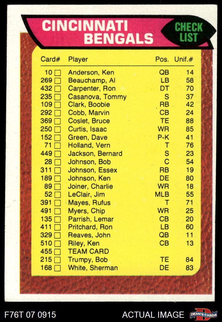1976 Topps #455 Bengals Team Checklist 4 - VG/EX
