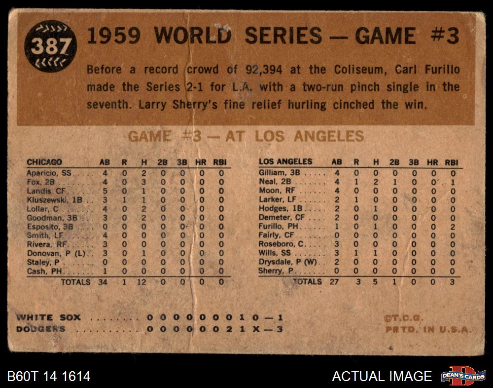 1960 Topps #387 - Carl Furillo 1959 World Series - Game #3 - Furillo Breaks Up Game 1 - POOR