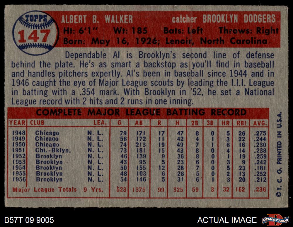 1957 Topps #147 Al Walker 4 - VG/EX