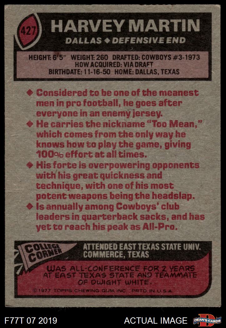 1977 Topps #427 Harvey Martin 4 - VG/EX