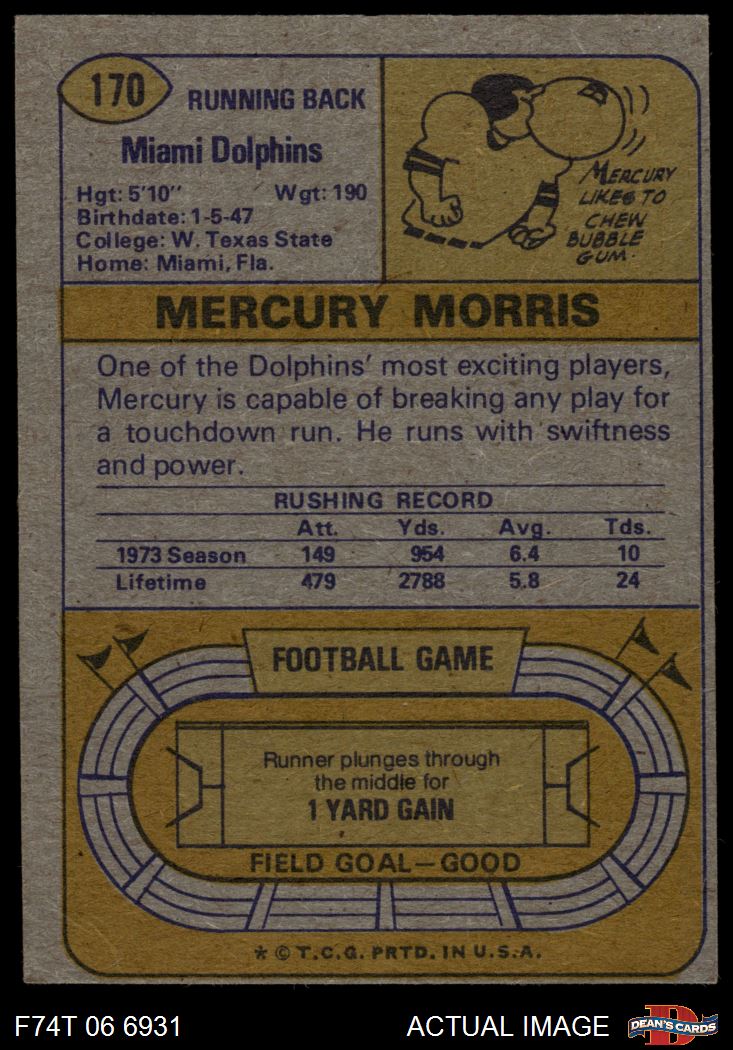 1974 Topps #170 Mercury Morris 4 - VG/EX