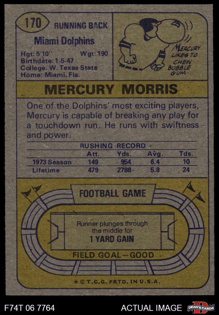 1974 Topps #170 Mercury Morris 8 - NM/MT