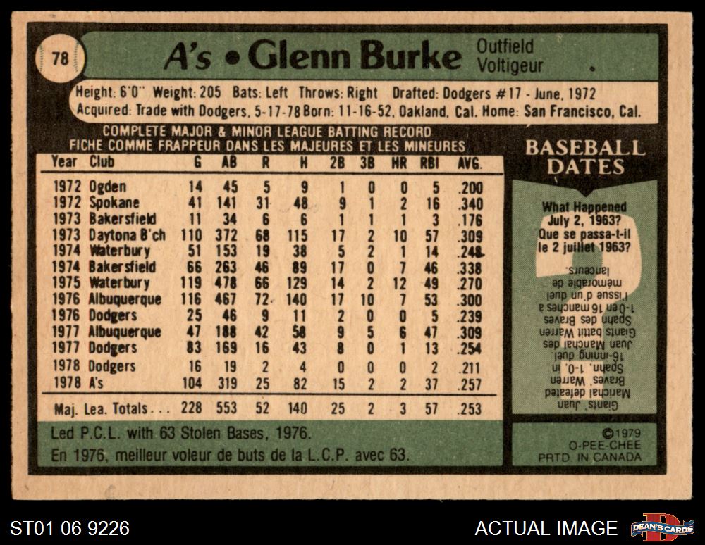 1979 O-Pee-Chee #78 Glenn Burke 5 - EX