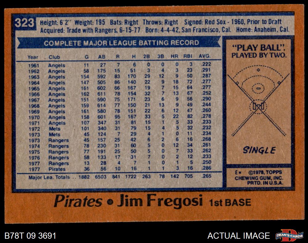 1978 Topps #323 Jim Fregosi 6 - EX/MT