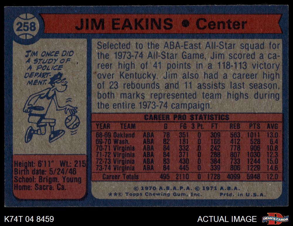 1974 Topps #258 Jim Eakins 6.5 - EX/MT+