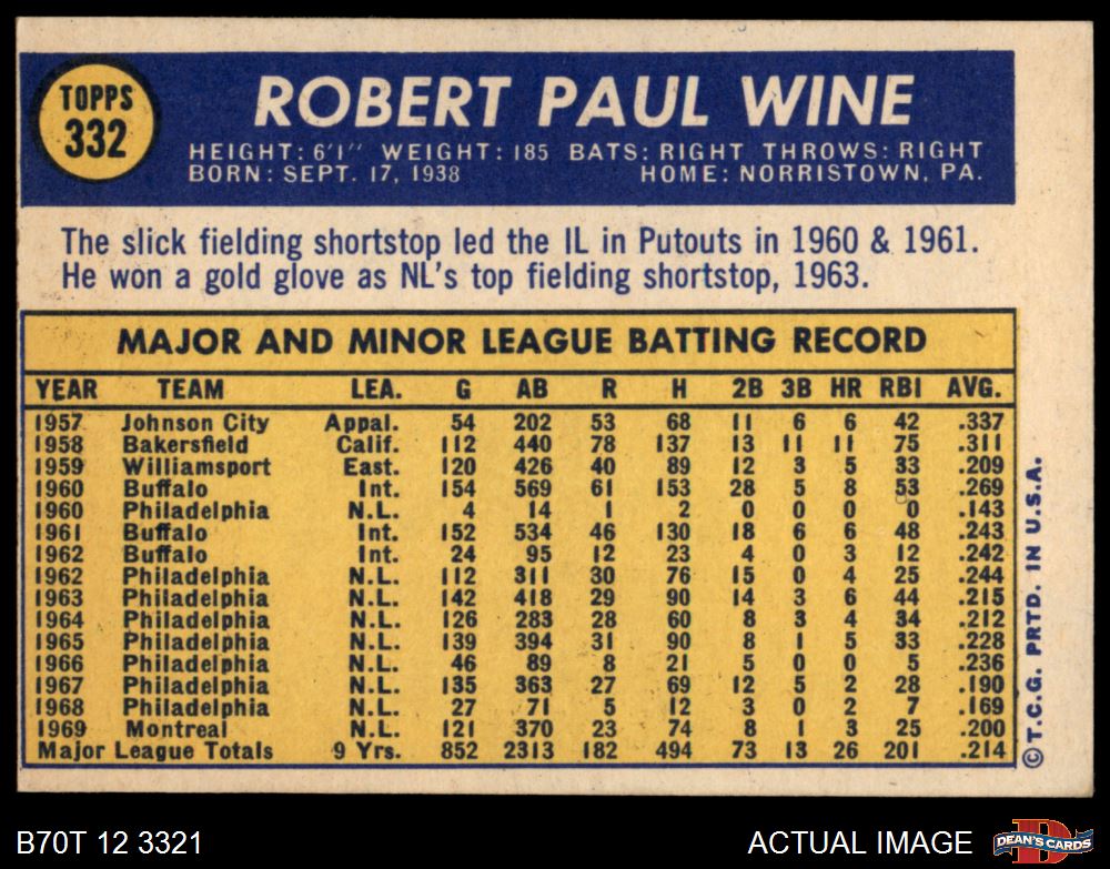 1970 Topps #332 Bobby Wine 4 - VG/EX