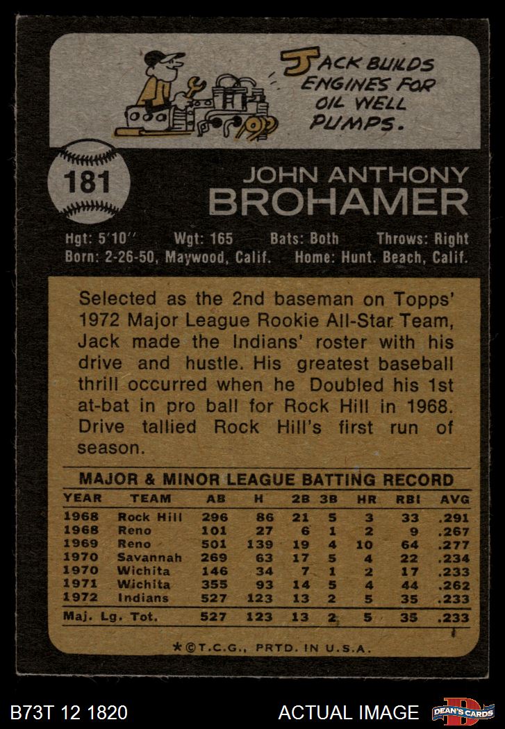 1973 Topps #181 Jack Brohamer 3.5 - VG+