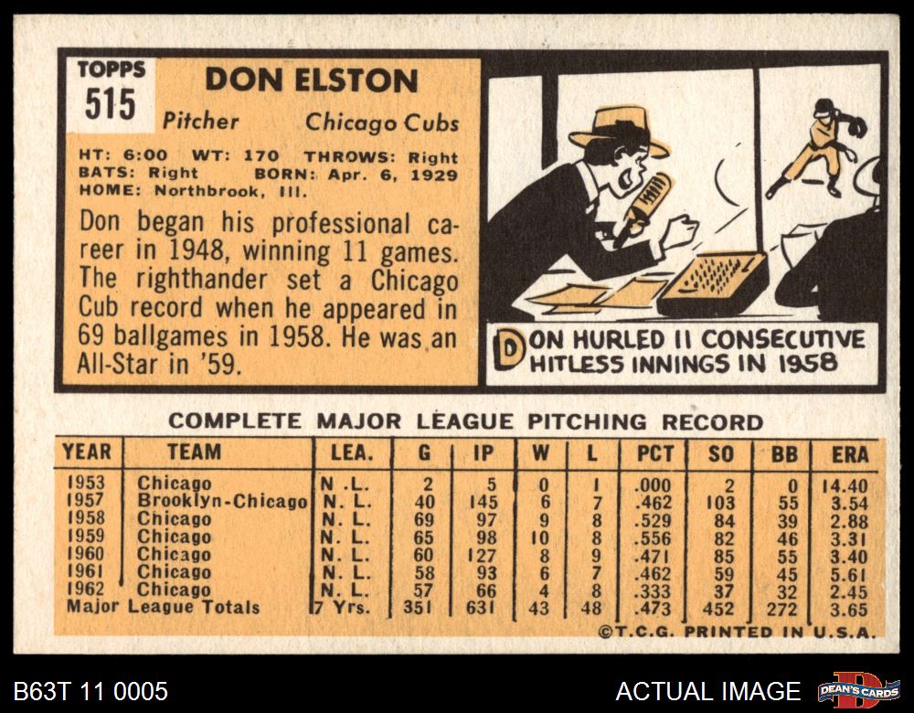1963 Topps #515 Don Elston