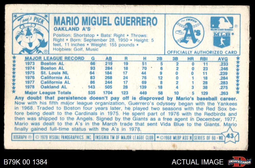 1979 Kellogg's #43 Mario Guerrero 3 - VG
