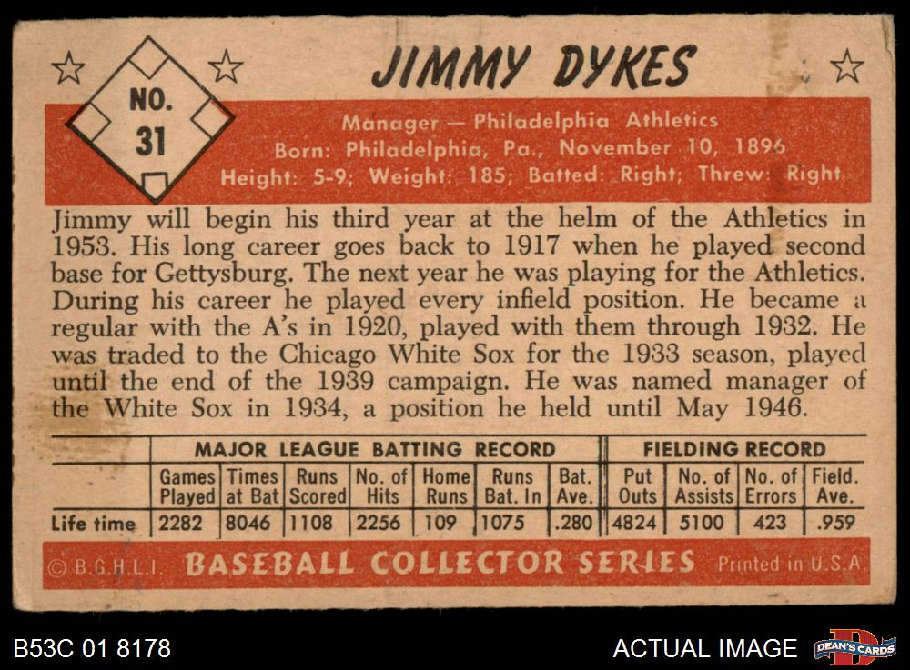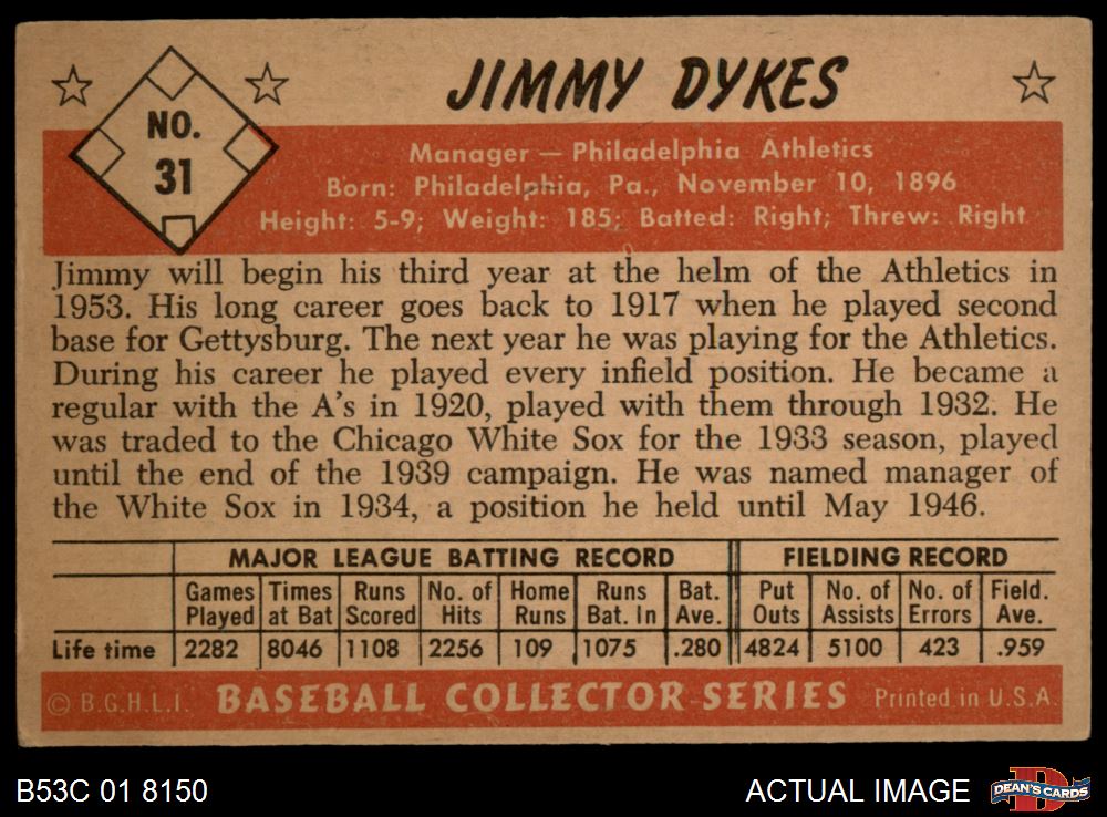 1953 Bowman #31 Jimmy Dykes 3 - VG