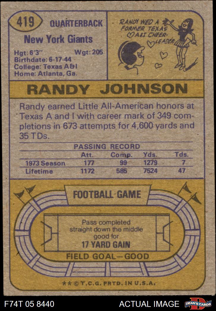 1974 Topps #419 Randy Johnson Front Thumbnail