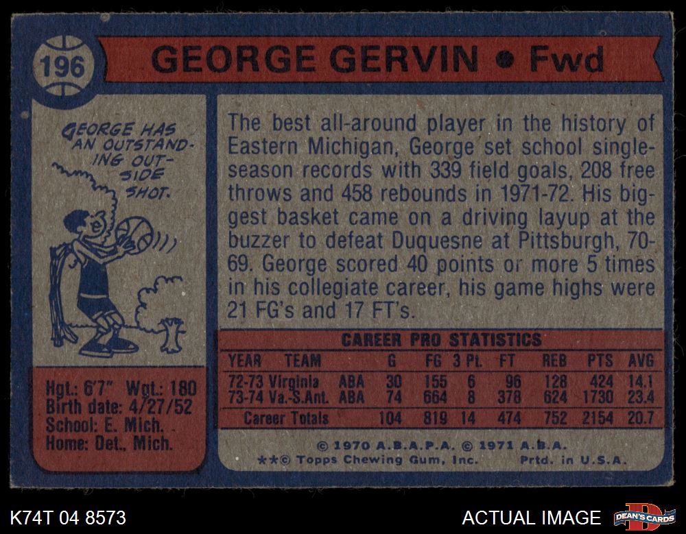 1974 Topps #196 George Gervin 4.5 - VG/EX+