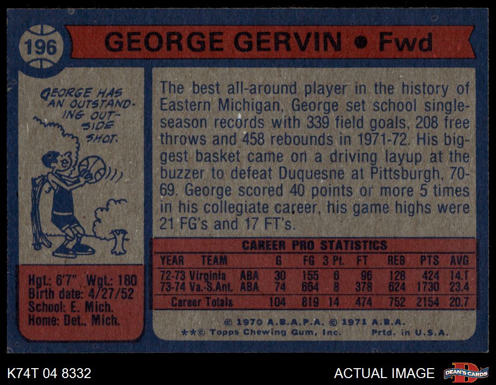 1974 Topps #196 George Gervin 7 - NM