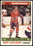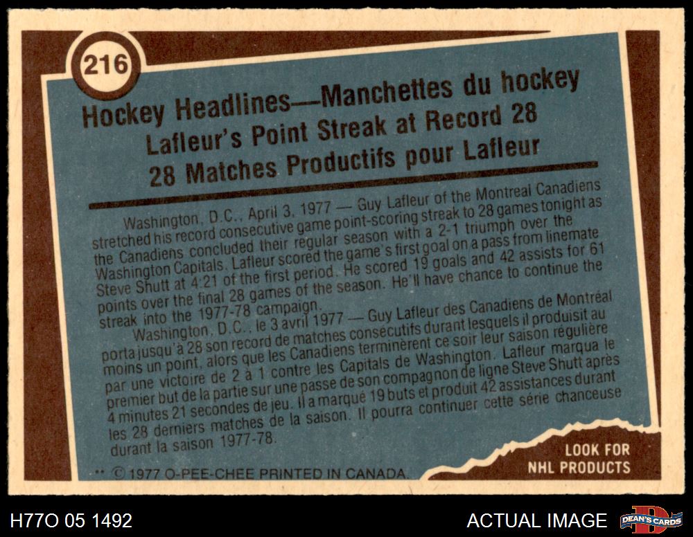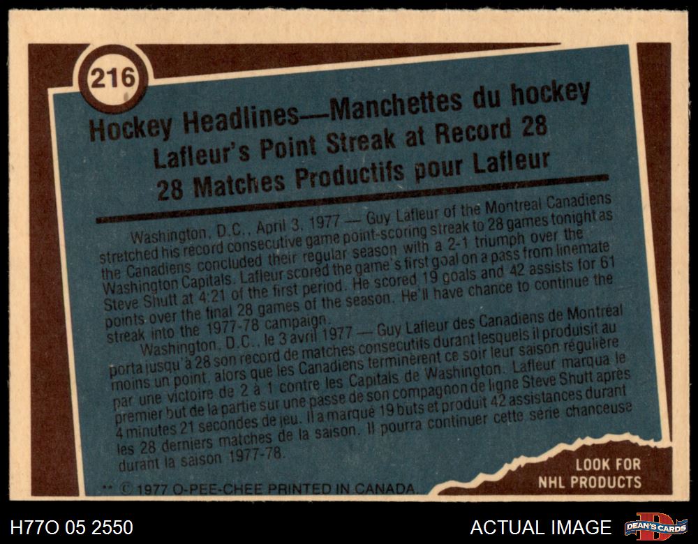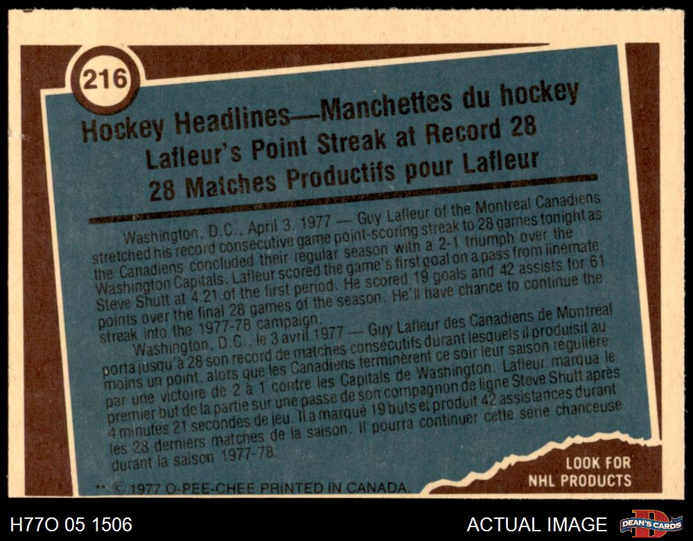 1977 O-Pee-Chee #216 - Guy Lafleur Record Breaker 7 - NM