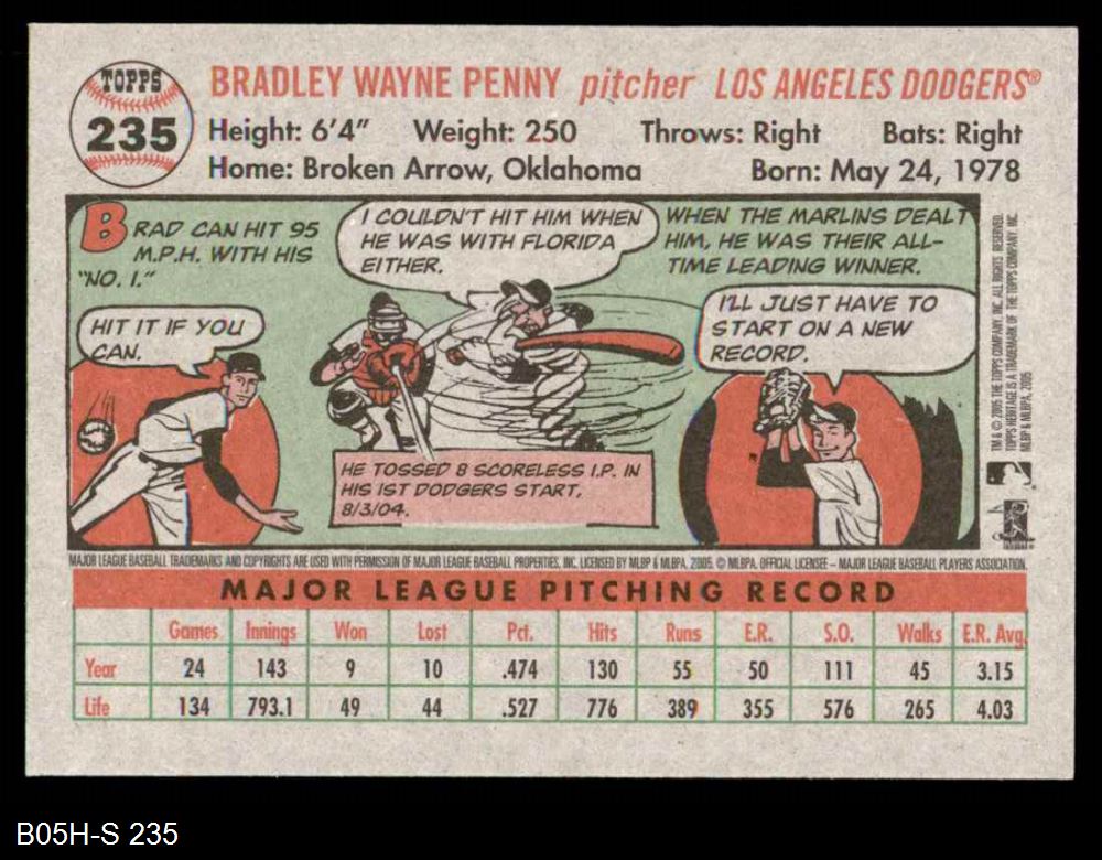 2005 Topps Heritage #235 Brad Penny 8 - NM/MT