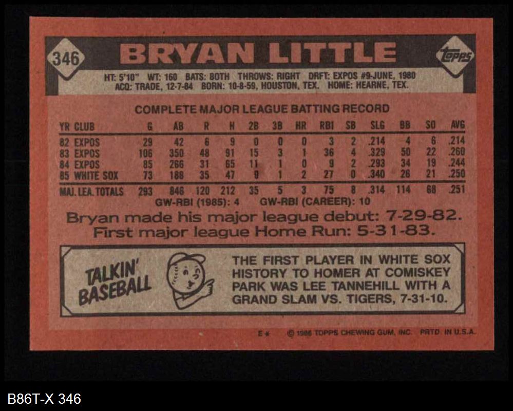 1986 Topps #346 Bryan Little