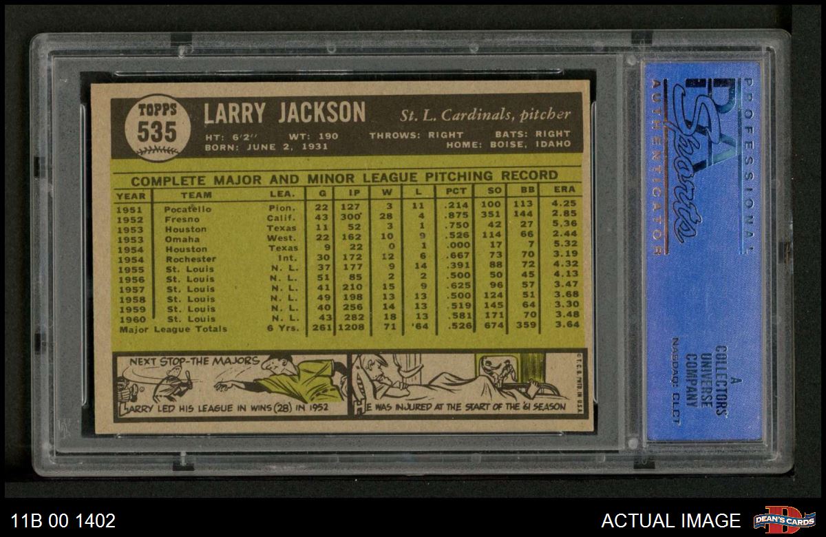 1961 Topps #535 Larry Jackson PSA 8 - NM/MT