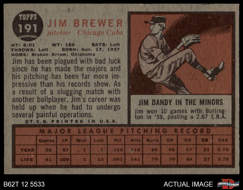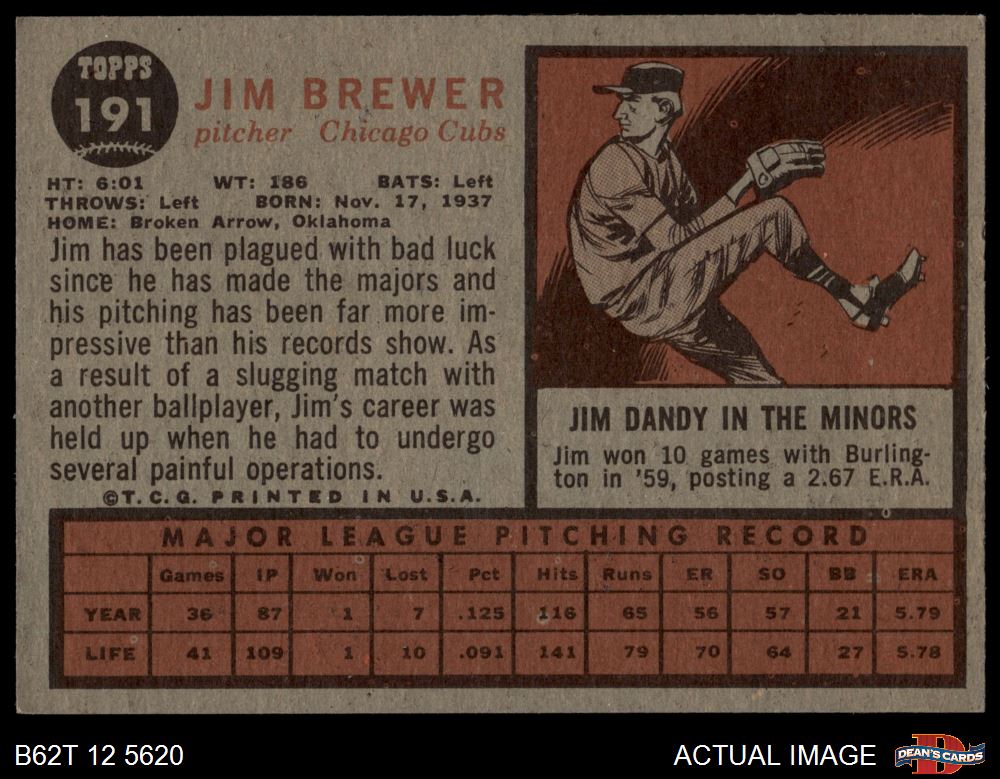 1962 Topps #191 NRM Jim Brewer 1.5 - FAIR