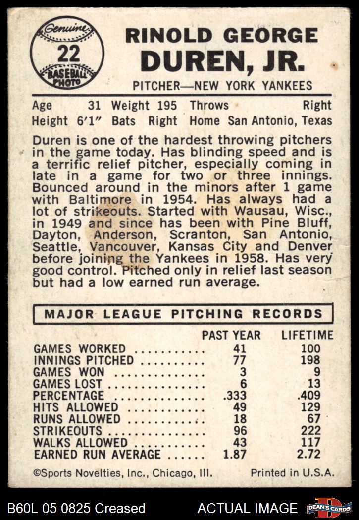 1960 Leaf #22 Ryne Duren 2 - GOOD
