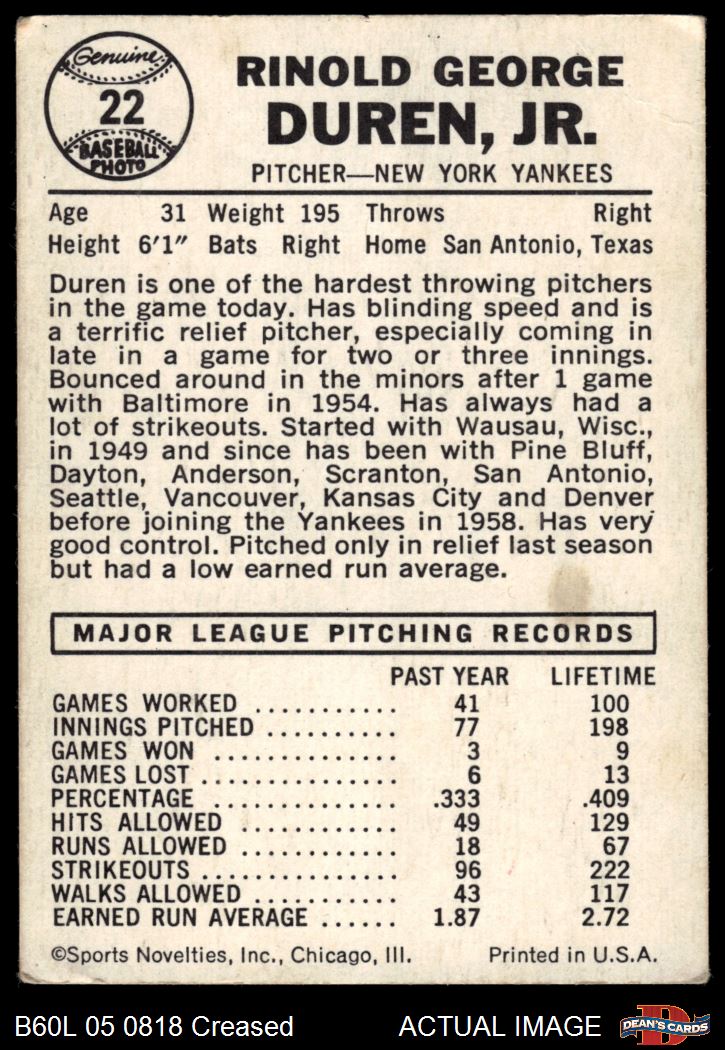 1960 Leaf #22 Ryne Duren 2.5 - GD+