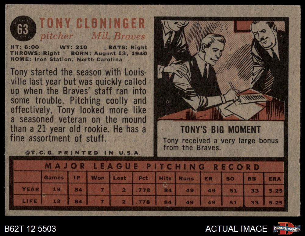 1962 Topps #63 Tony Cloninger 5.5 - EX+