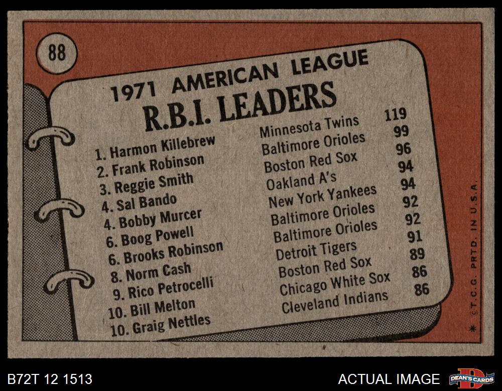 1972 Topps #88 AL RBI Leaders