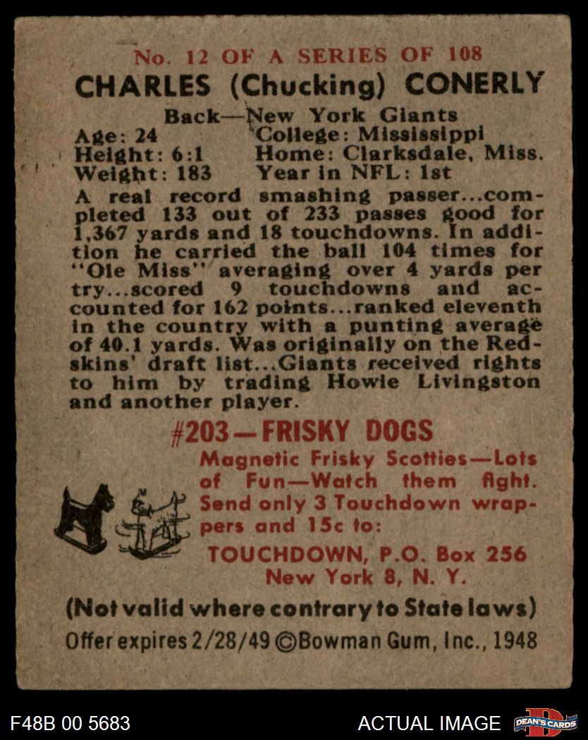 1948 Bowman #12 Charley Conerly 4 - VG/EX