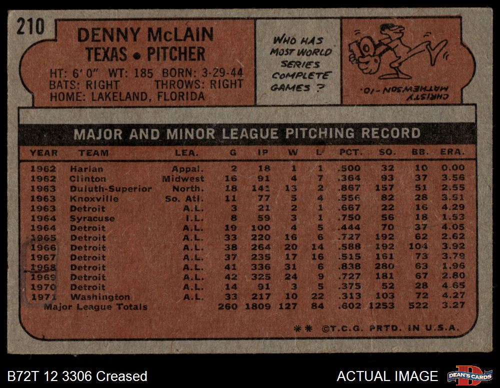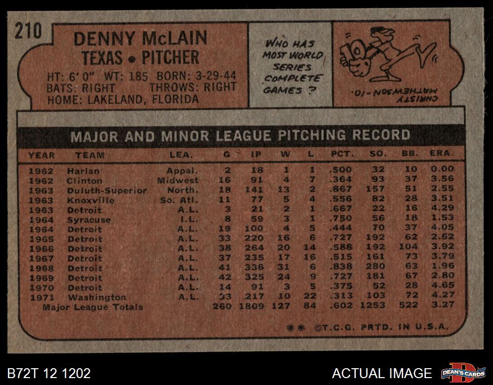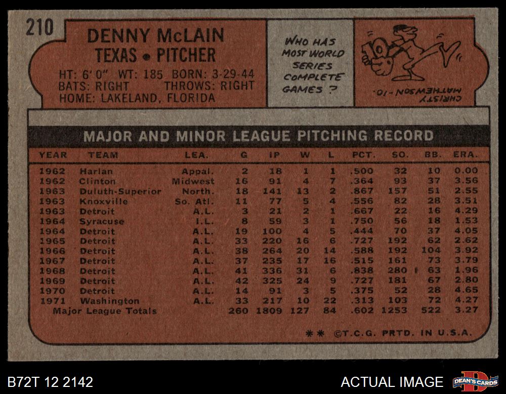 1972 Topps #210 Denny McLain