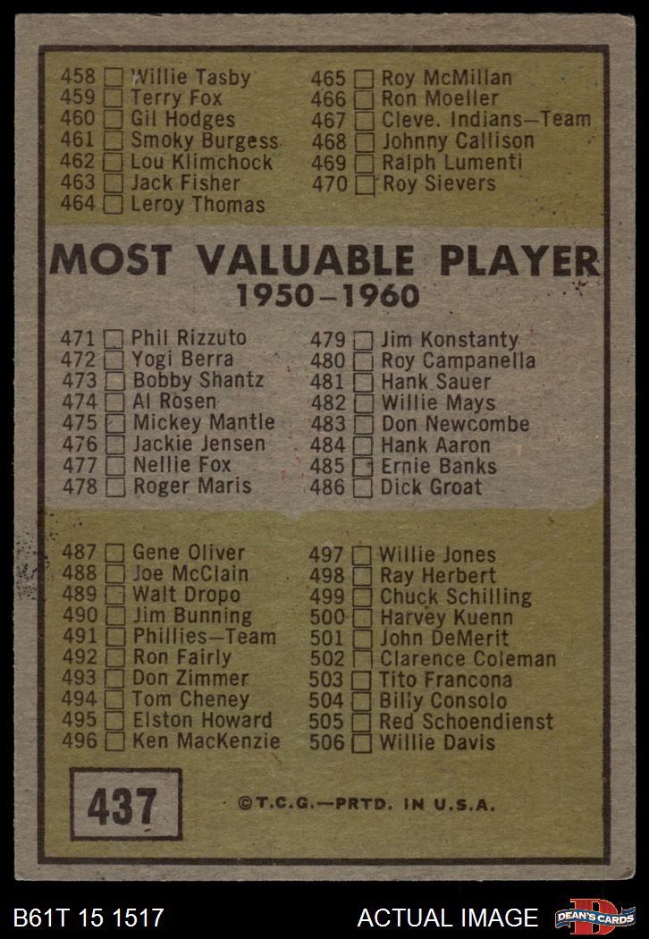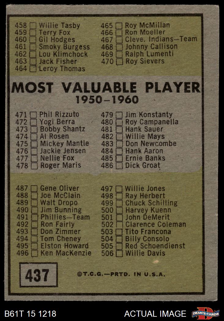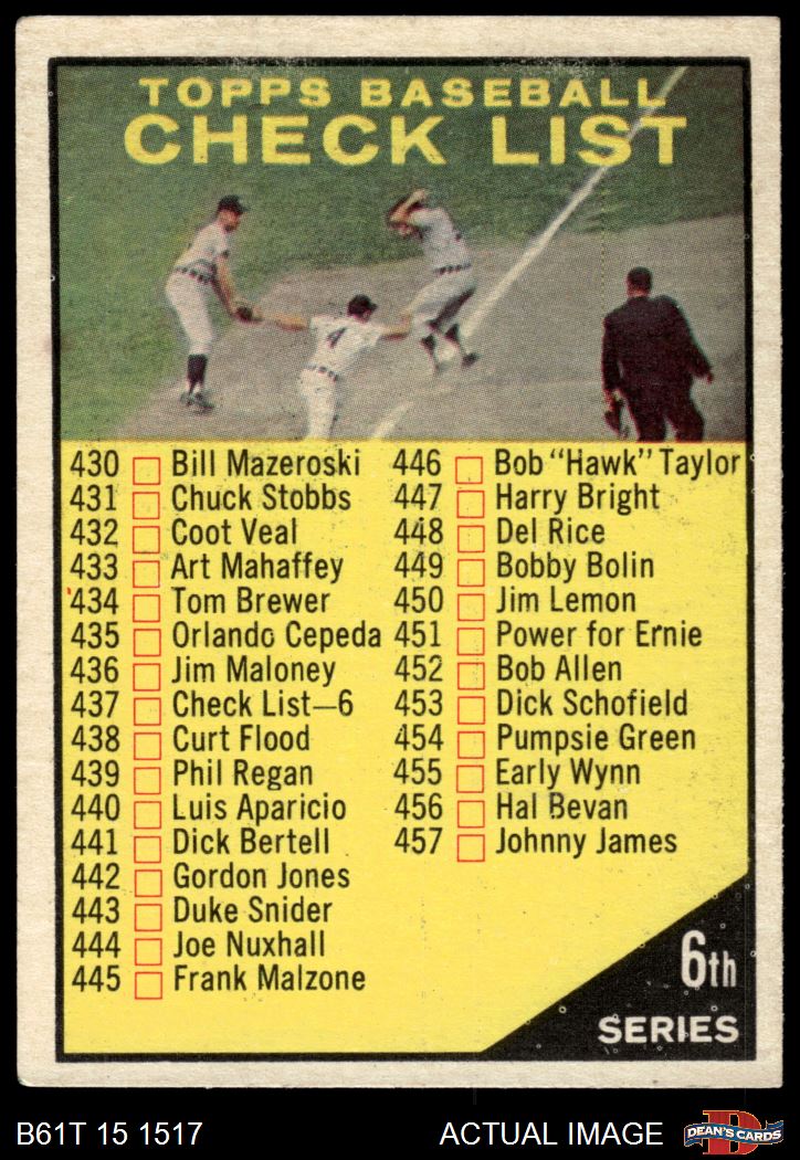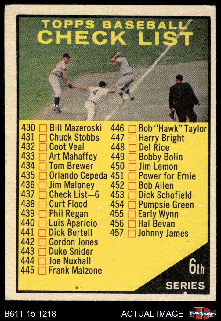 1961 Topps #437 COR Checklist 6 4 - VG/EX