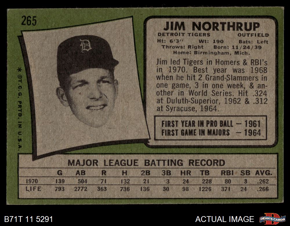 1971 Topps #265 xBLOB Jim Northrup 5 - EX