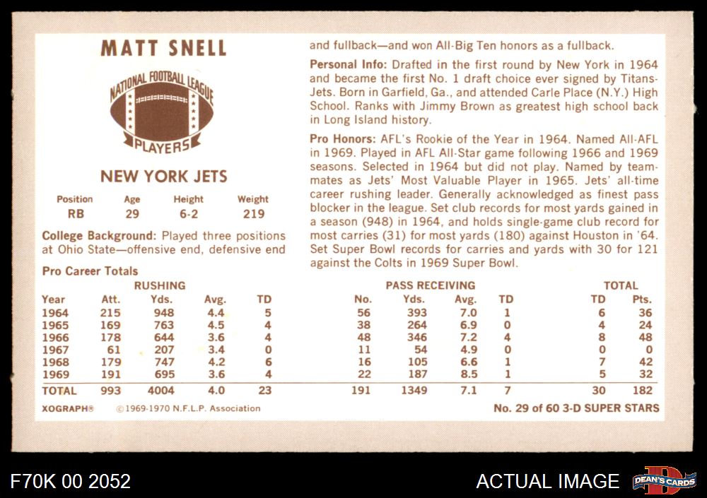 1970 Kellogg's #29 Matt Snell