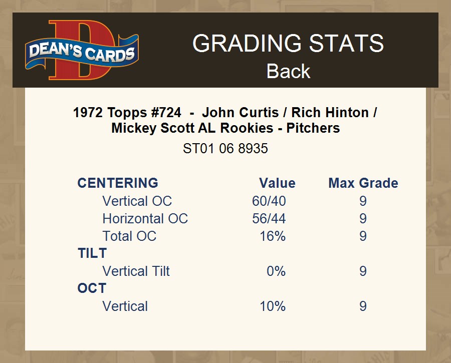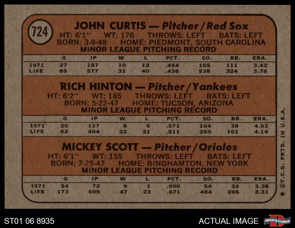 1972 Topps #724 - John Curtis / Rich Hinton / Mickey Scott AL Rookies - Pitchers 7 - NM