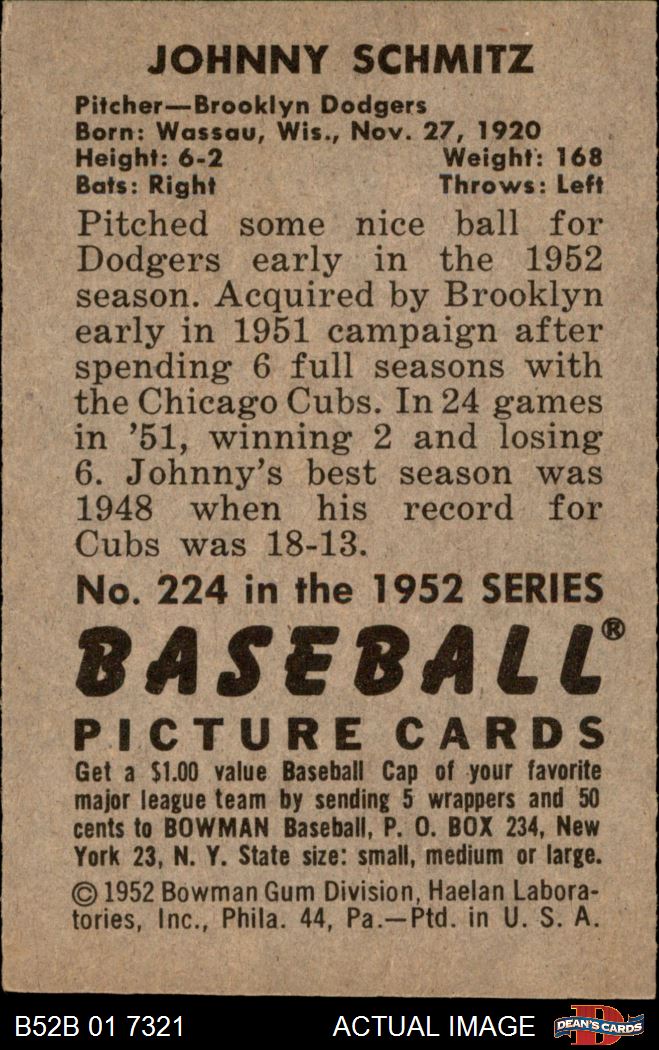 1952 Bowman Baseball Cards (843 available)1952 Bowman Dodgers (96 available)