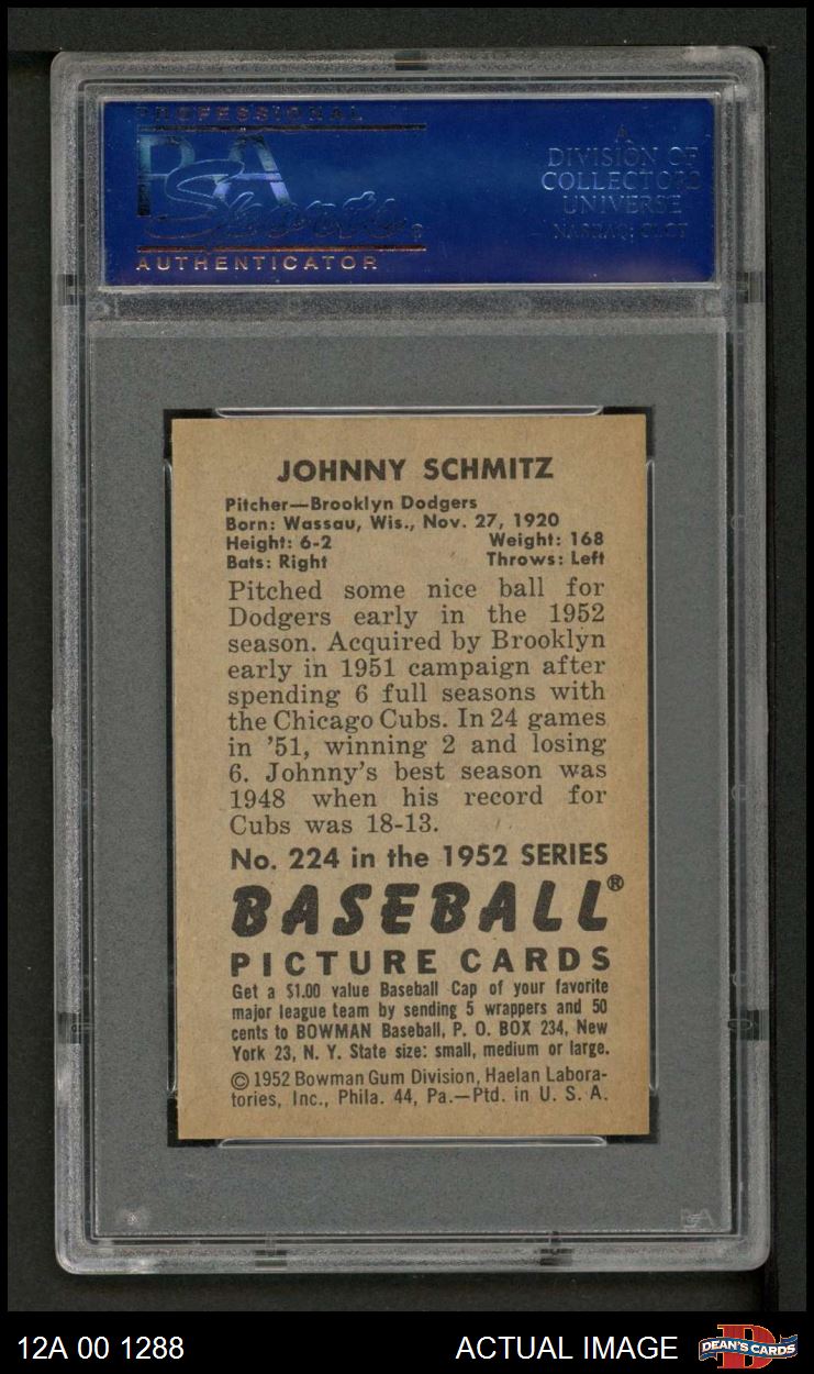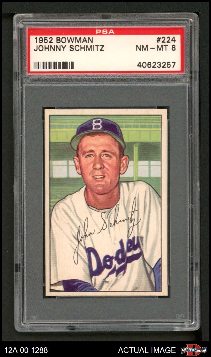1952 Bowman #224 Johnny Schmitz PSA 8 - NM/MT